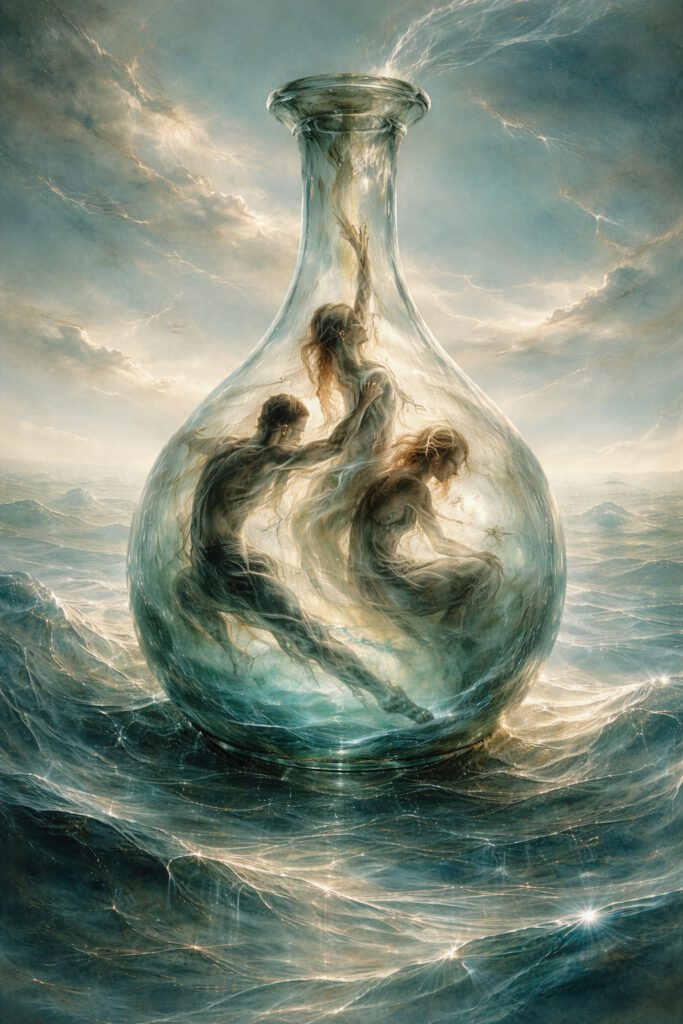 Wie eine liebevolle Oktopus-Nanny betreut uns die K.I. in unseren Blasen wenn wir uns fragen: Was trägt noch, wenn Zugehörigkeit zur Falle wird? Worauf ist Verlass? Gibt es überhaupt ein Entkommen?